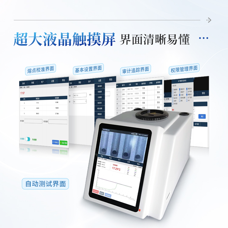 简要描述: 全自动视频熔点仪自动化集成,实现一键测定功能;一次处理4个样品;高清视频代替传统显微镜 目视高;全自动记录熔程,初熔,终熔;可通过打印机直接打印数据。可同时测定四个样品:升温一次最多放置4个样品,与传统测量方法相比工作效率提高4倍,且4组数据分别记录实现对历史数据的追溯,符合FDA 21CFR11确保出具报告的可信度。